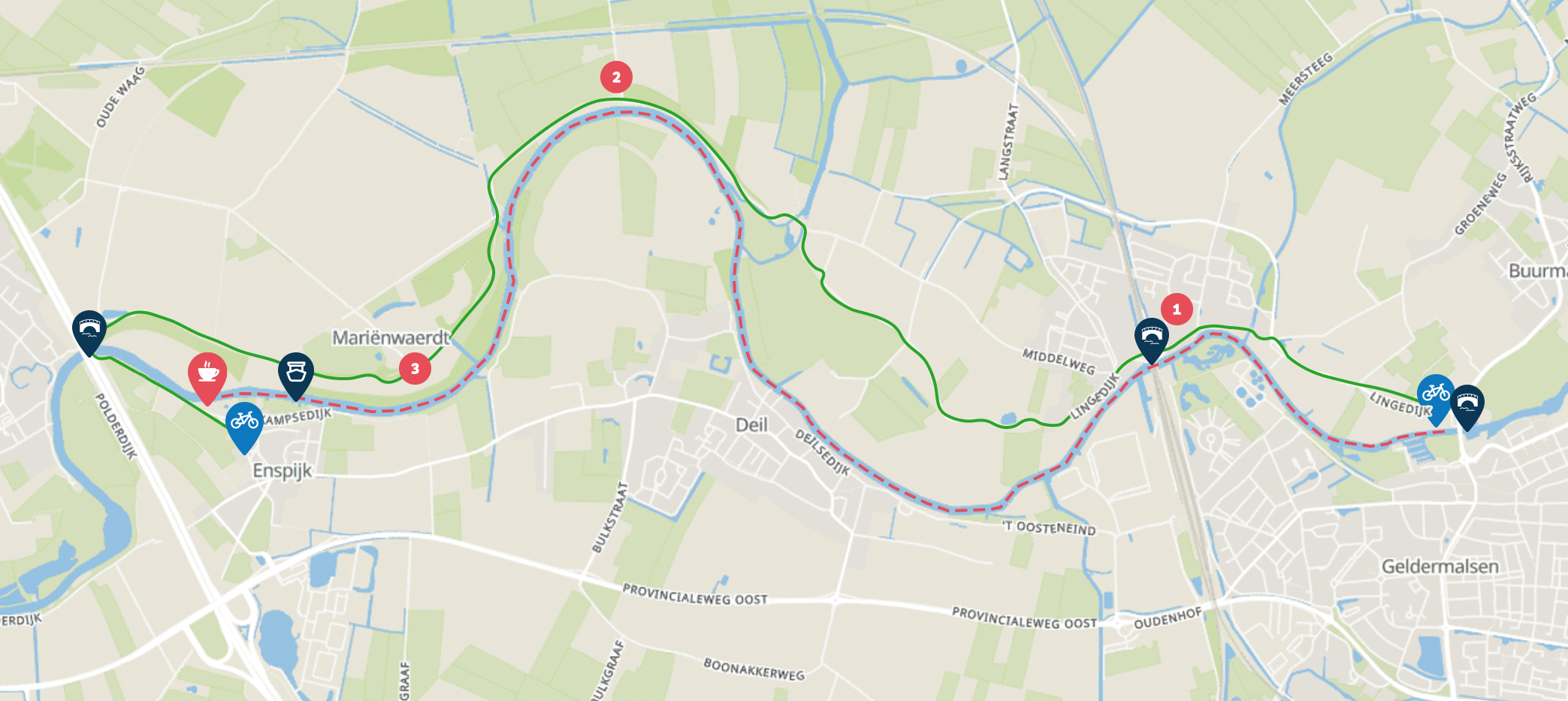 Landgoed Heerlijkheid Mariënwaerdt, een familielandgoed van ruim 900 hectare aan de andere kant van de Linge ten opzichte van dorp Enspijk. Het landgoed is al sinds 1743 in handen van dezelfde familie. Het Landgoed beschikt over historische locaties, ook is het landgoed opengesteld om vrij over te wandelen of te fietsen.